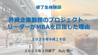 多国籍企業のプロジェクト・リーダーがMBAを目指した理由(2025年9/18実施)丸山英一さん(2025年3月修了)